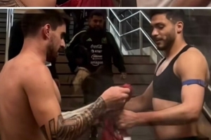 比赛结束之后,劳尔·希门尼斯与鲁本·内维斯互换球衣,两人曾在狼队共事