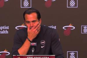 赛后,热火主教练斯波点评阿德巴约表现时说道:“这是一个超现实的夜晚,我们在这座球馆里见证过太多奇迹,今晚这就这么发生了,我们很幸运,能够见证这一刻。他第一节的表现就像一头怪兽,半场40+,半场休息的时候我们还是在说就正常打我们的比赛,但球就是在不断的找到他。一旦他得到50分,我们就认为他能得60分,一旦他得到60分,我们就说得70分吧,我从那时候起就没想过,甚至不敢换下他,我想让他享受生涯之夜,让他享受球迷的欢呼,我不知道他的得分什么时候会停止,但他一直在得分,最终我在他得分超越科比后才把他换下来。”