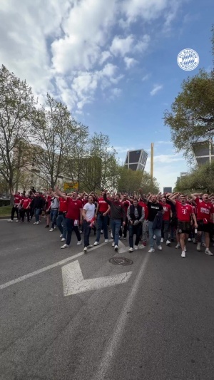 体育资讯04月08日讯 欧冠8强首回合,拜仁客战皇马,赛前拜仁官方晒出了球迷远征军朝伯纳乌前进的视频。