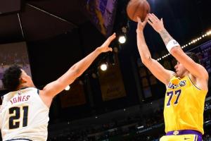 体育资讯3月15日讯 NBA常规赛, 湖人加时2分险胜掘金。